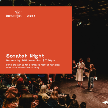 Come and join us for a fantastic night of new queer work from local artists at Unity!
